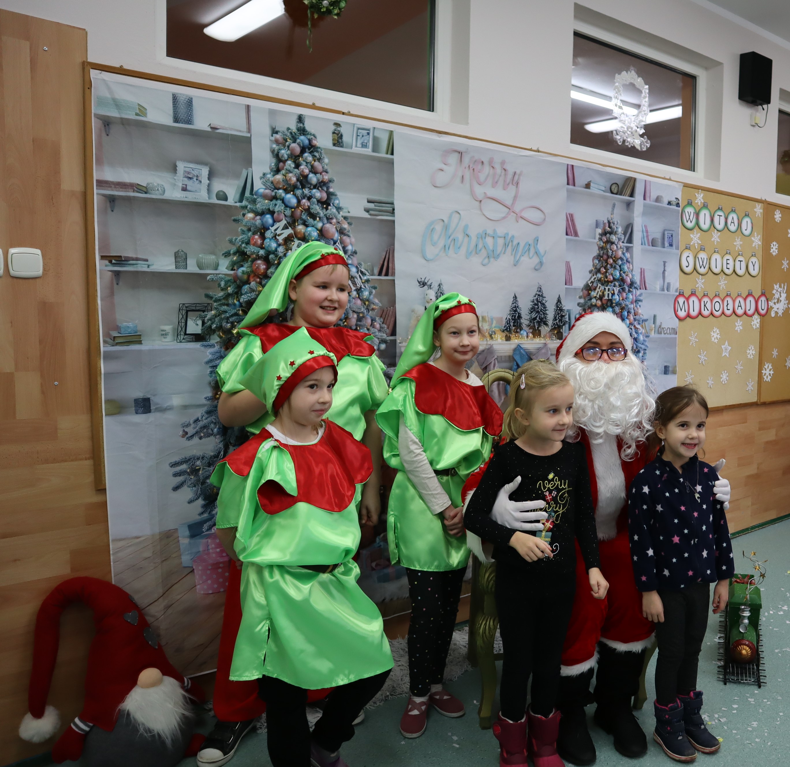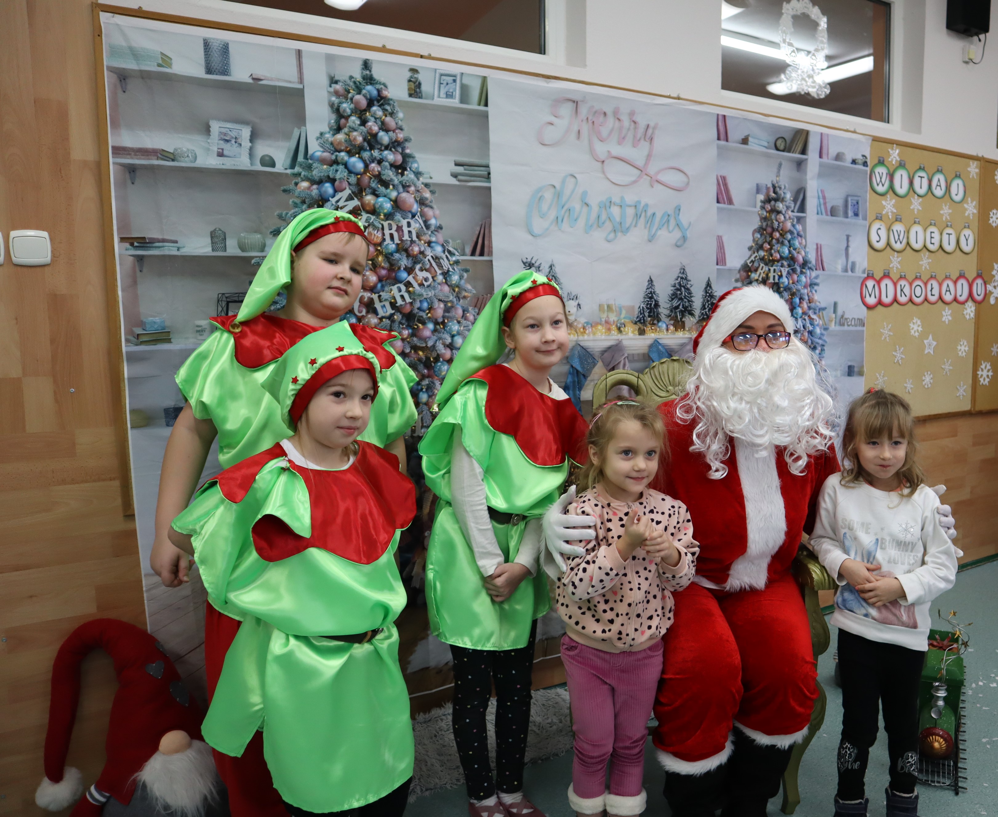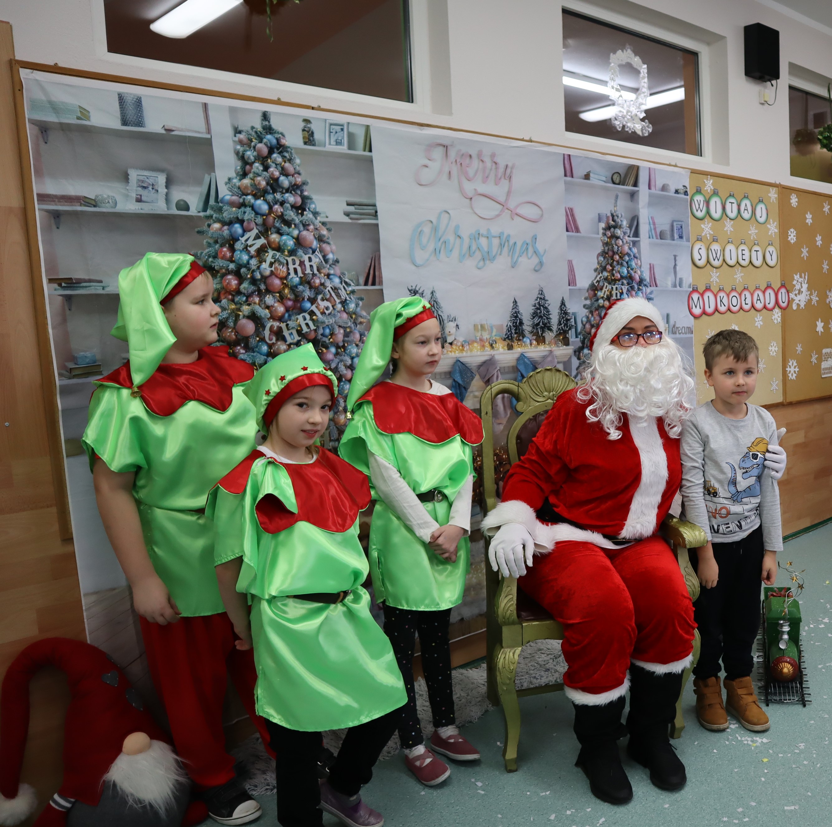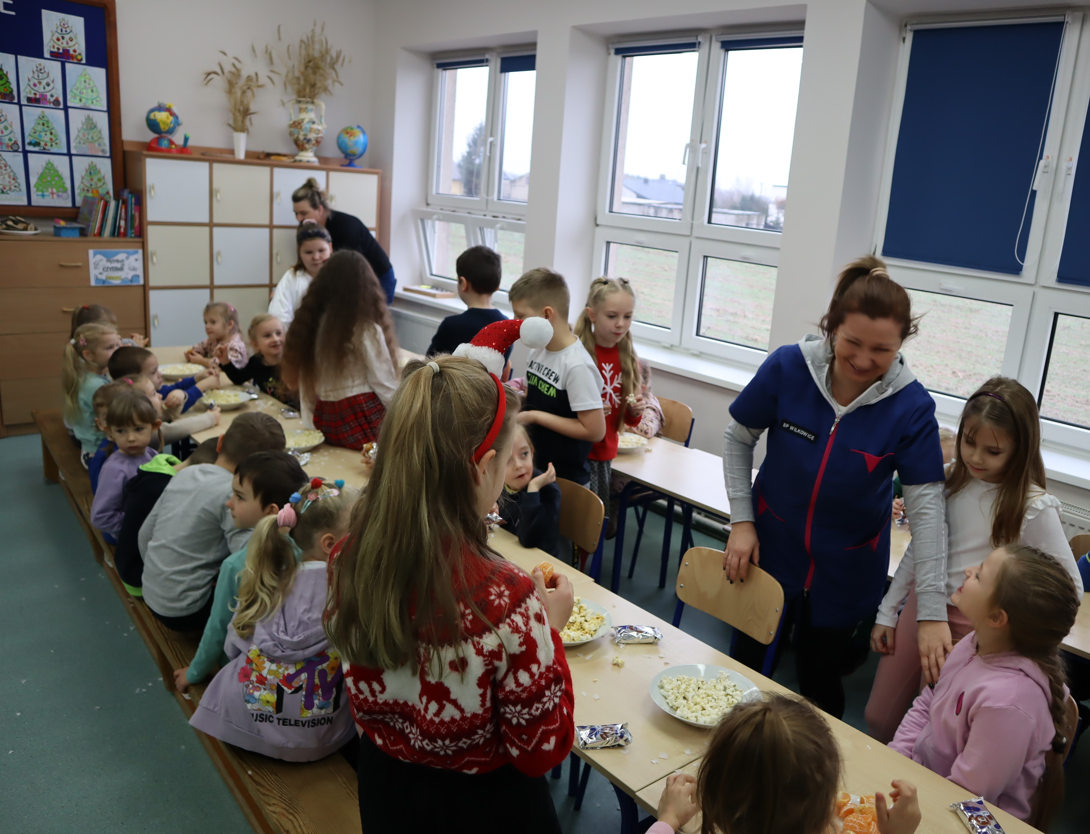 Korzystając z przedświątecznej atmosfery uczniowie z klasy III wraz z wychowawczynią p. Klarą Sobczak, zaprosili dzieci z przedszkola „Miś” w Czerniewicach, na mikołajkową inscenizację. Młodzi aktorzy z chęcią zaprezentowali piosenki i wiersze o Mikołaju, nie zabrakło oczywiście samego Mikołaja, który wręczył wszystkim słodkie upominki. Potem przyszedł czas na sesję zdjęciową i poczęstunek. Dzieci zwiedziły szkołę i spotkały się z przedszkolakami z szkolnego oddziału przedszkolnego. Takie spotkanie odbędzie się na pewno jeszcze nie raz. Jest to okazja nie tylko do integracji dzieci z przedszkola ze szkołą, ale także do wspólnego spędzenia czasu.