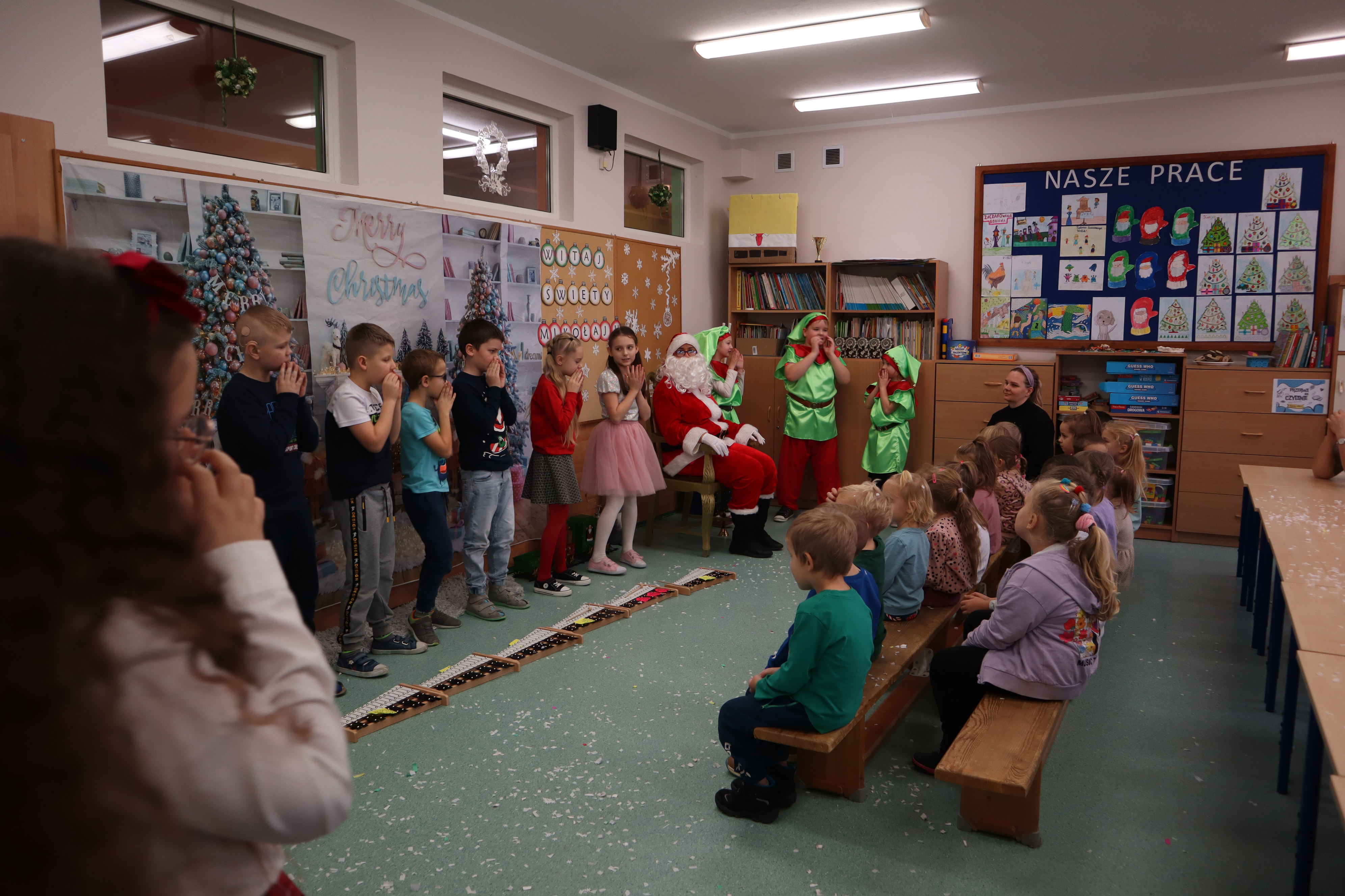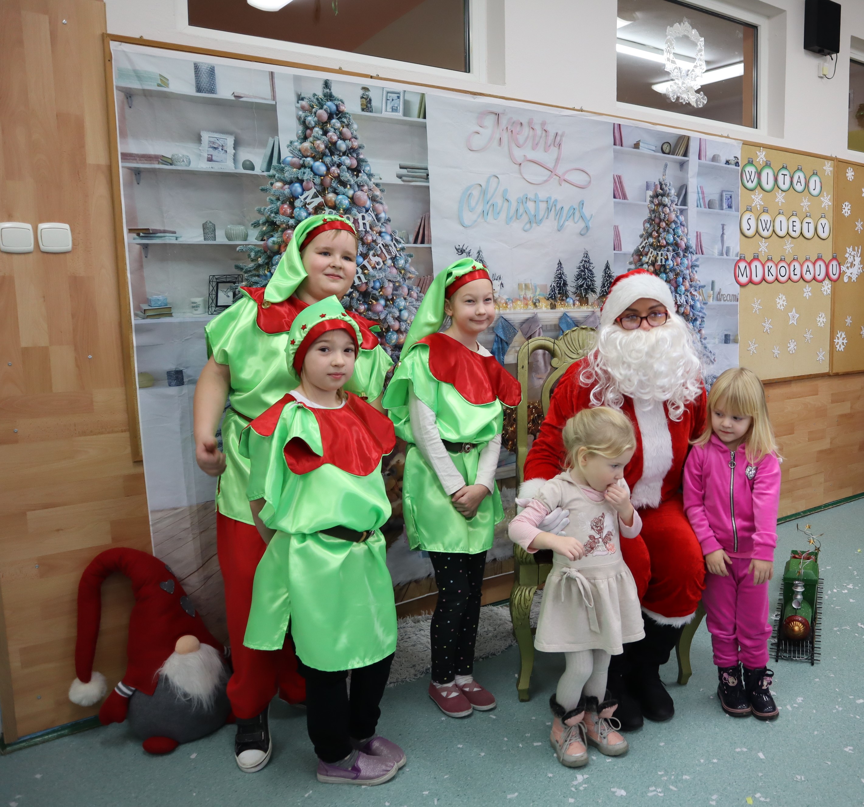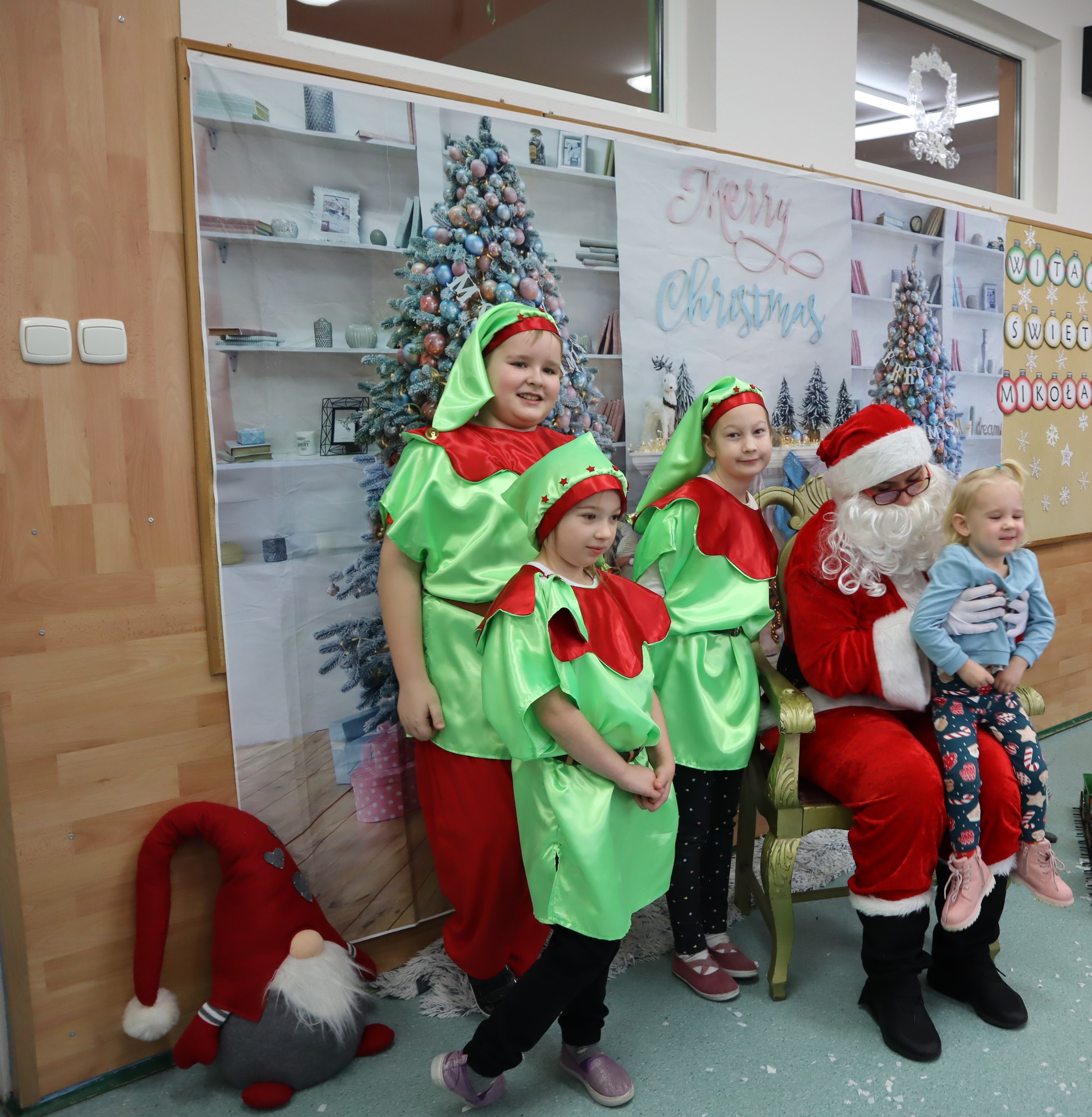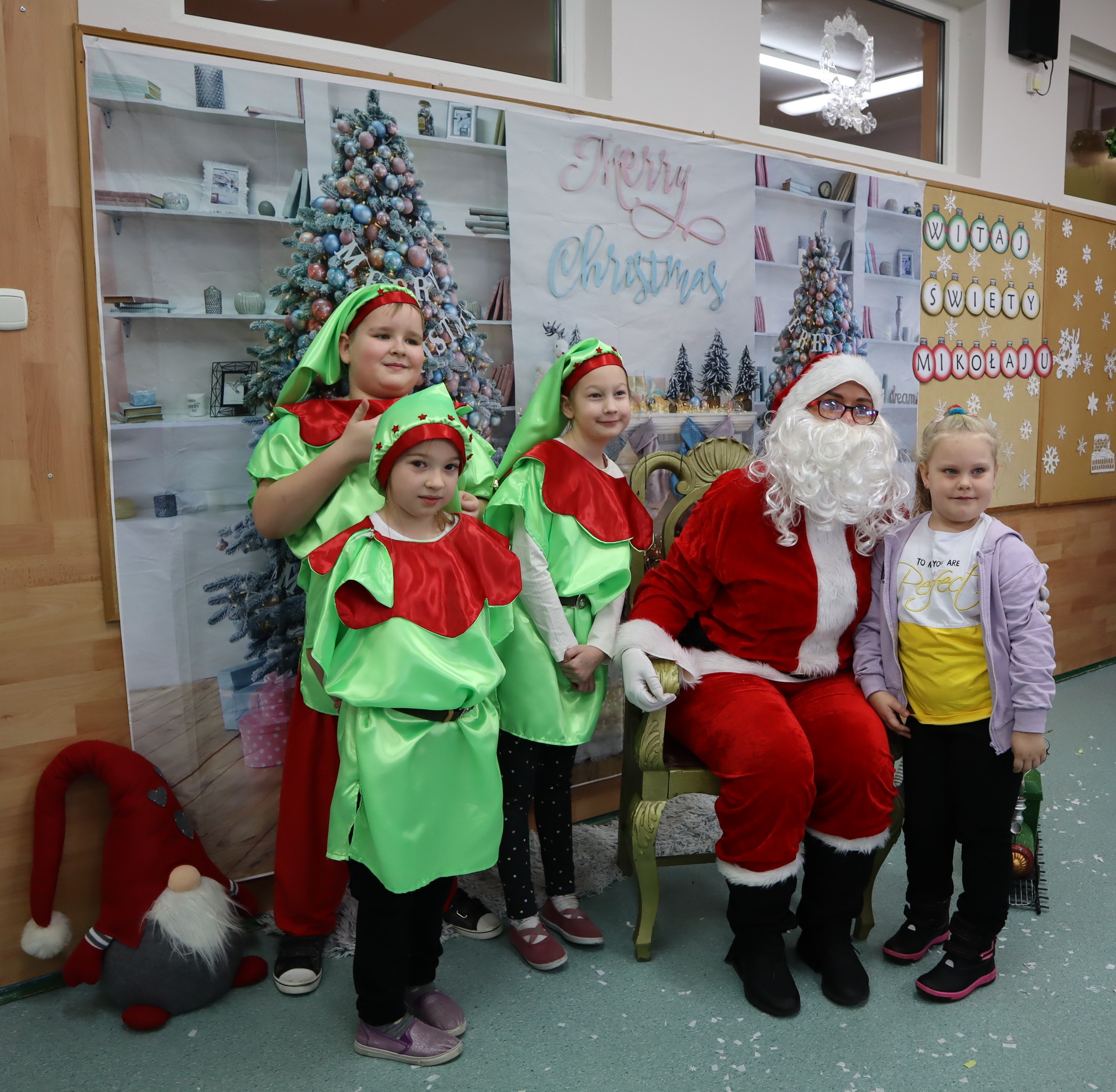 Korzystając z przedświątecznej atmosfery uczniowie z klasy III wraz z wychowawczynią p. Klarą Sobczak, zaprosili dzieci z przedszkola „Miś” w Czerniewicach, na mikołajkową inscenizację. Młodzi aktorzy z chęcią zaprezentowali piosenki i wiersze o Mikołaju, nie zabrakło oczywiście samego Mikołaja, który wręczył wszystkim słodkie upominki. Potem przyszedł czas na sesję zdjęciową i poczęstunek. Dzieci zwiedziły szkołę i spotkały się z przedszkolakami z szkolnego oddziału przedszkolnego. Takie spotkanie odbędzie się na pewno jeszcze nie raz. Jest to okazja nie tylko do integracji dzieci z przedszkola ze szkołą, ale także do wspólnego spędzenia czasu.