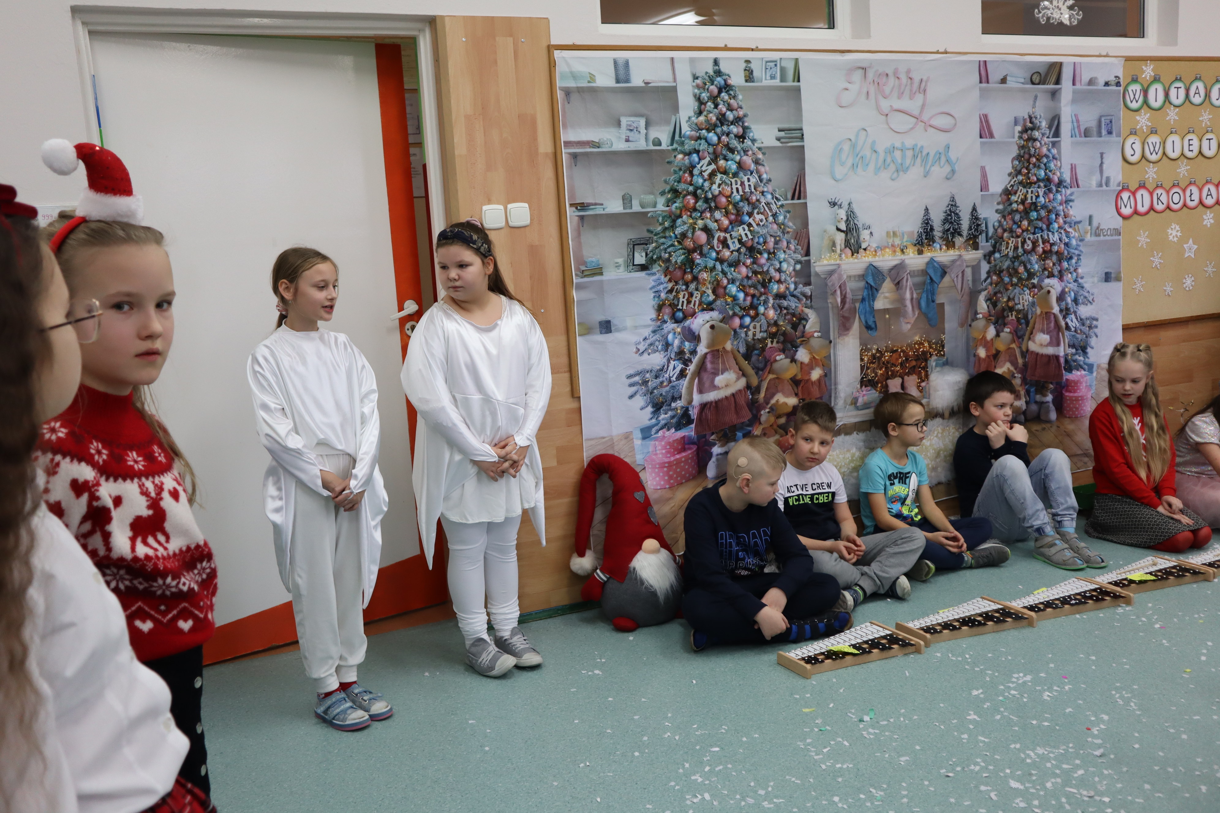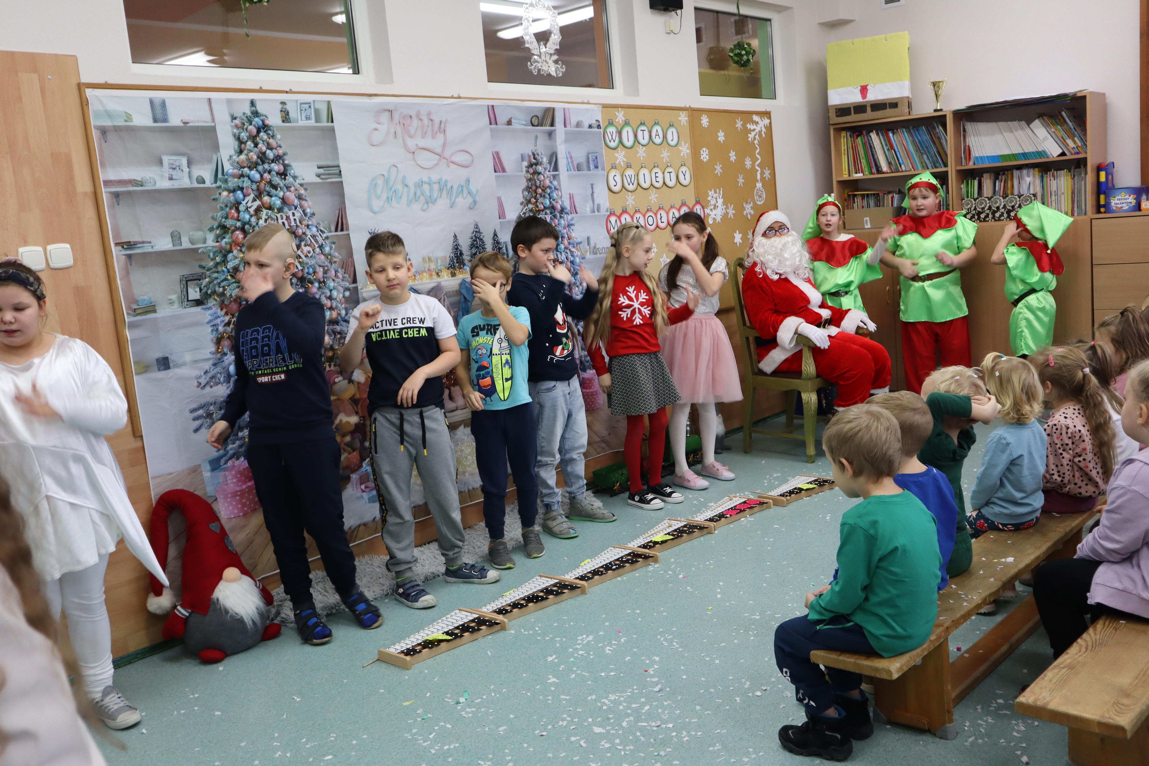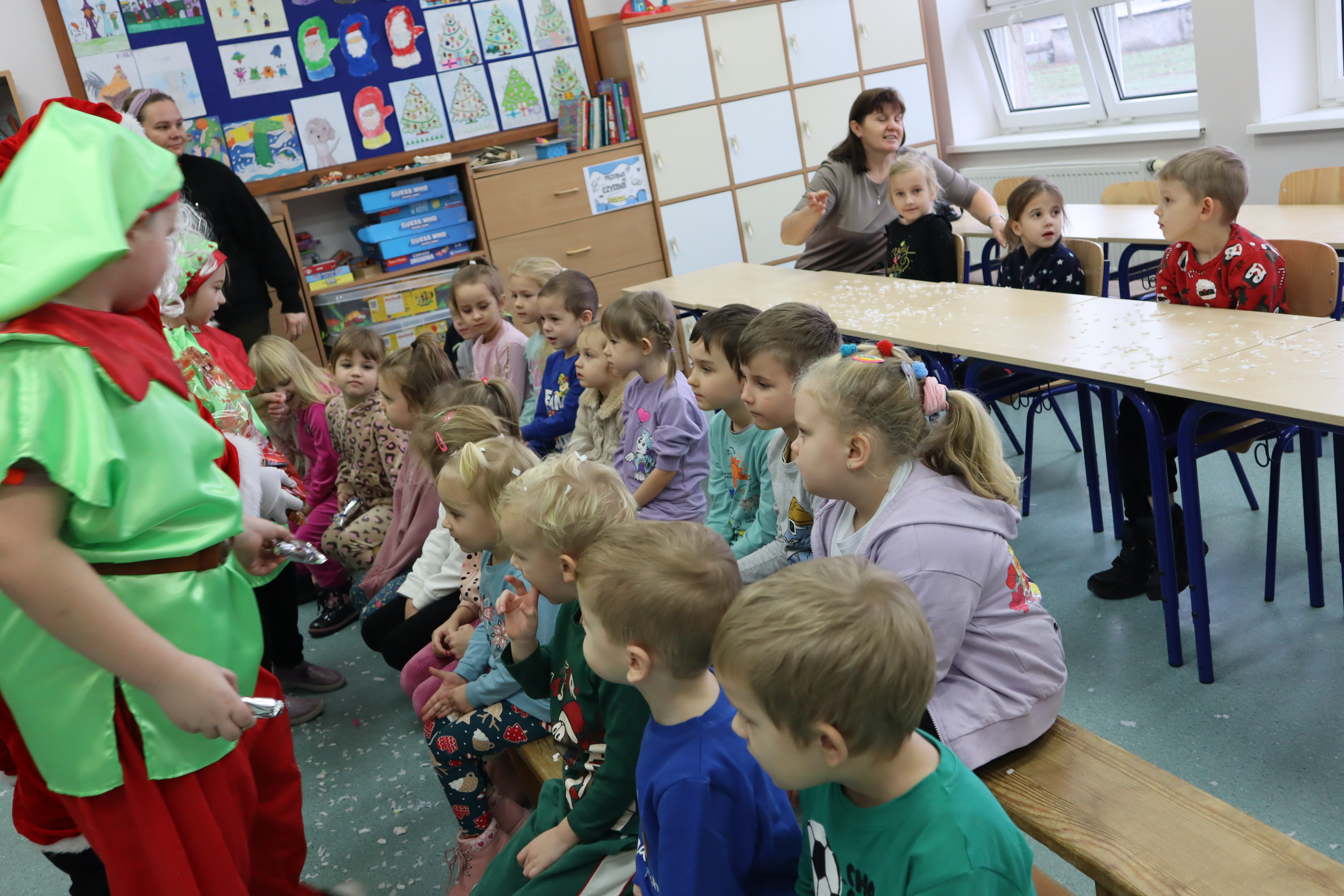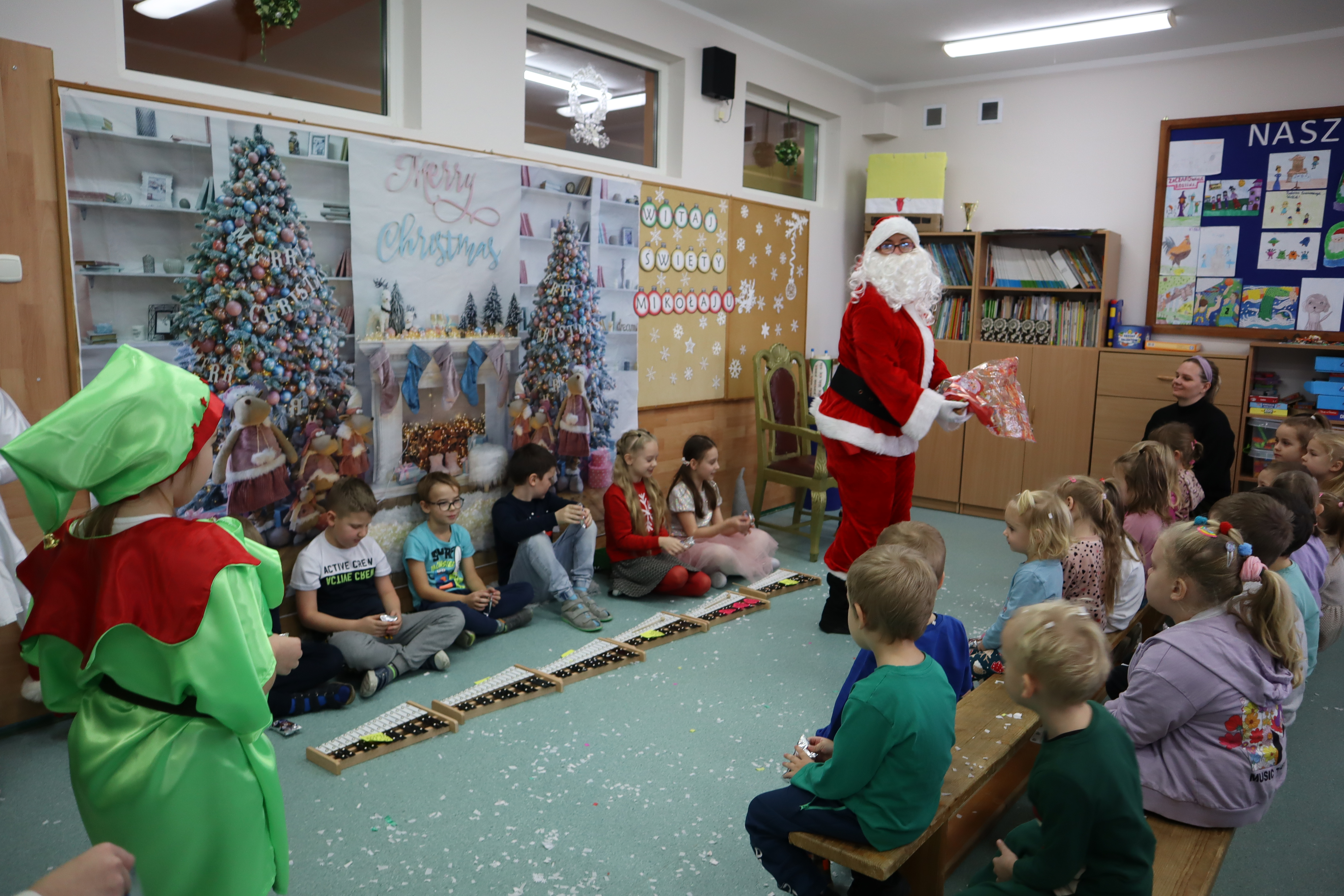 Korzystając z przedświątecznej atmosfery uczniowie z klasy III wraz z wychowawczynią p. Klarą Sobczak, zaprosili dzieci z przedszkola „Miś” w Czerniewicach, na mikołajkową inscenizację. Młodzi aktorzy z chęcią zaprezentowali piosenki i wiersze o Mikołaju, nie zabrakło oczywiście samego Mikołaja, który wręczył wszystkim słodkie upominki. Potem przyszedł czas na sesję zdjęciową i poczęstunek. Dzieci zwiedziły szkołę i spotkały się z przedszkolakami z szkolnego oddziału przedszkolnego. Takie spotkanie odbędzie się na pewno jeszcze nie raz. Jest to okazja nie tylko do integracji dzieci z przedszkola ze szkołą, ale także do wspólnego spędzenia czasu.