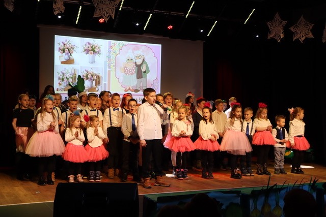 19 stycznia 2024r. uczniowie Szkoły Podstawowej w Wilkowicach z klas 0-8 zaprezentowali występ artystyczny dla Babć i Dziadków. Najlepsze życzenia od wnuków dla dziadków zostały przedstawione w formie pięknych wierszyków, wzruszających piosenek, porywających choreografii tanecznych oraz zabawnego kabaretu. Występy nagrodzone były oklaskami i szerokimi uśmiechami najukochańszych dziadków. Po części artystycznej odbył się słodki poczęstunek.